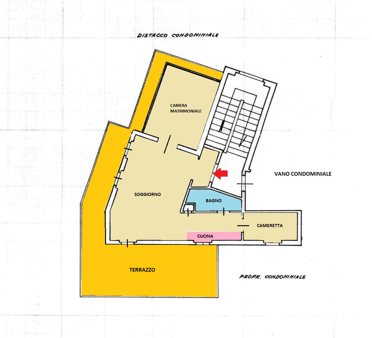 piano senza ascensore, con una superficie interna di circa 60 mq e un ampio terrazzo panoramico di circa 50 mq