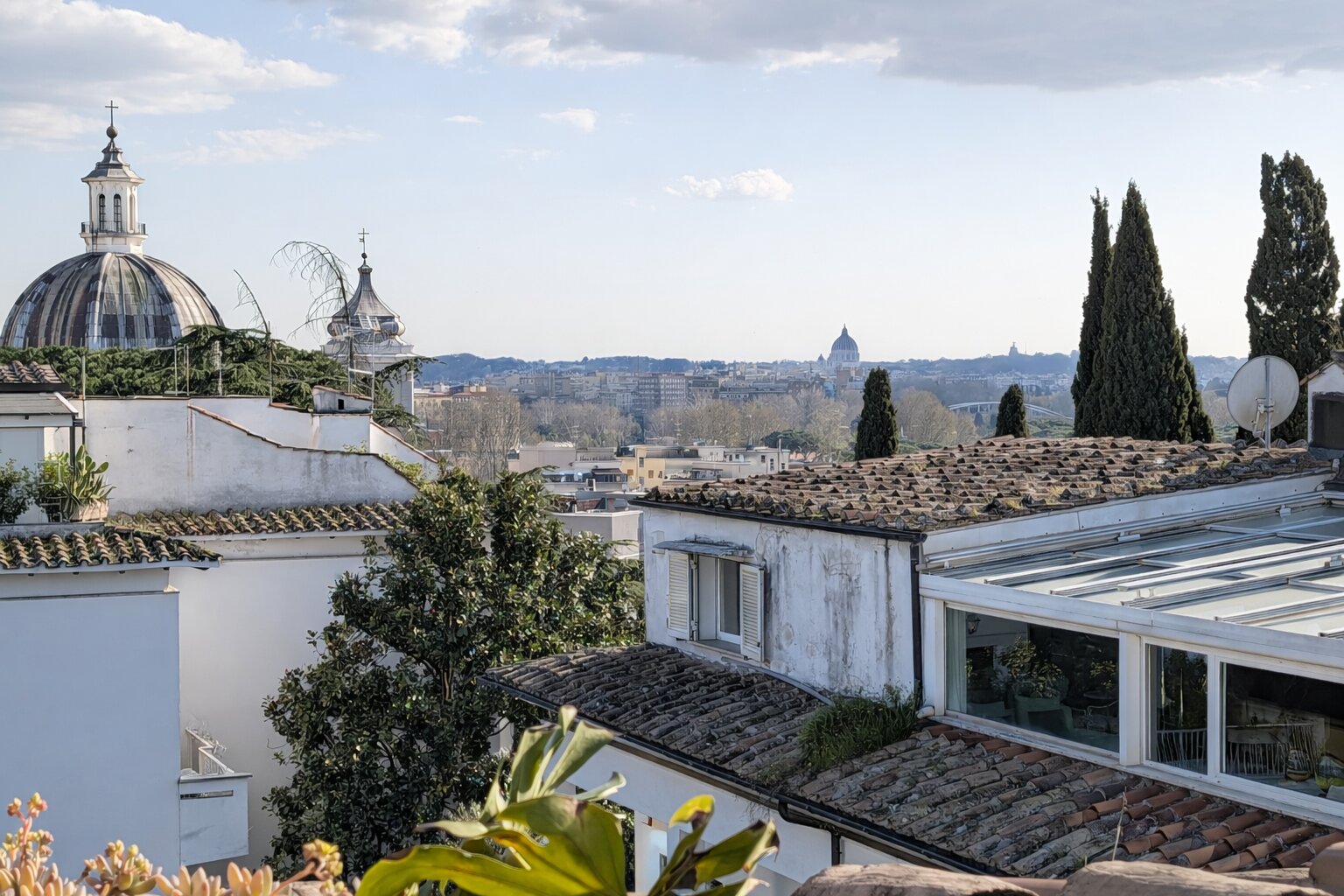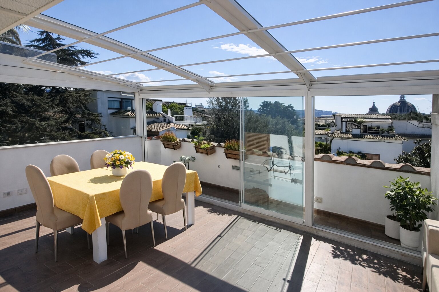 ricevere ospiti. Da qui si gode una vista aperta sulla città fino alla cupola della Basilica di San Pietro.