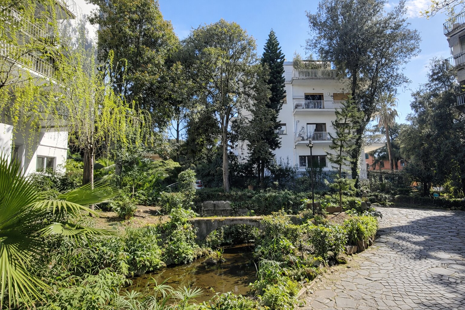 Il complesso è immerso in un parco condominiale di straordinaria cura, con prati e una selezione di piante