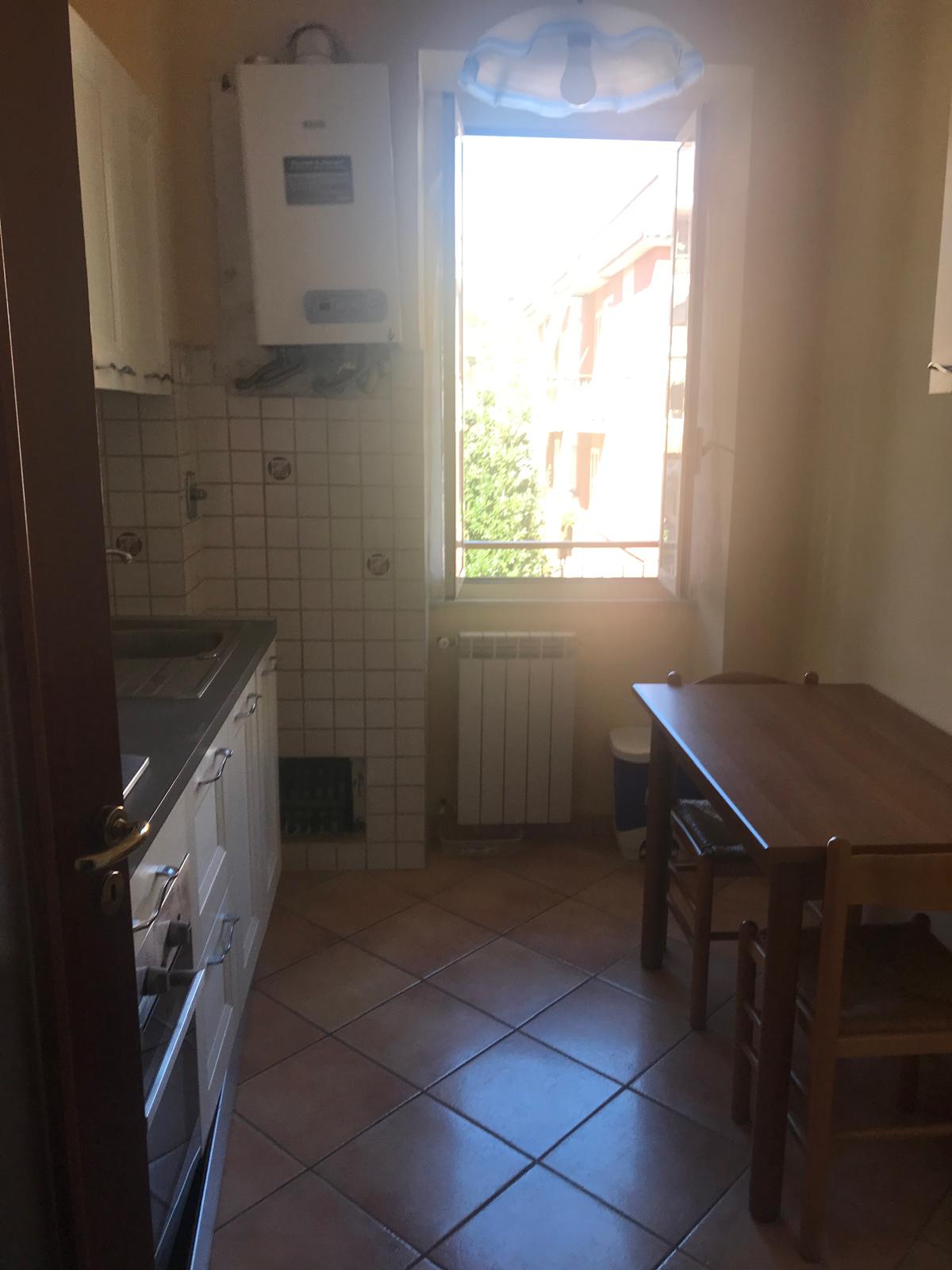 ingresso, due ampie camere da letto, cucina abitabile, bagno finestrato, comodo ripostiglio e spazio esterno.